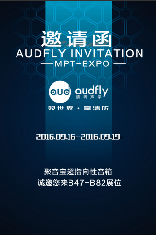 2016年9月16日在B47、B82號展位場地將舉辦一場干貨滿滿,學問多多的技術交流會。清聽聲學副總孫志強先生將會分享Audfly全新產品系列——《聚音寶超指向性音箱》。