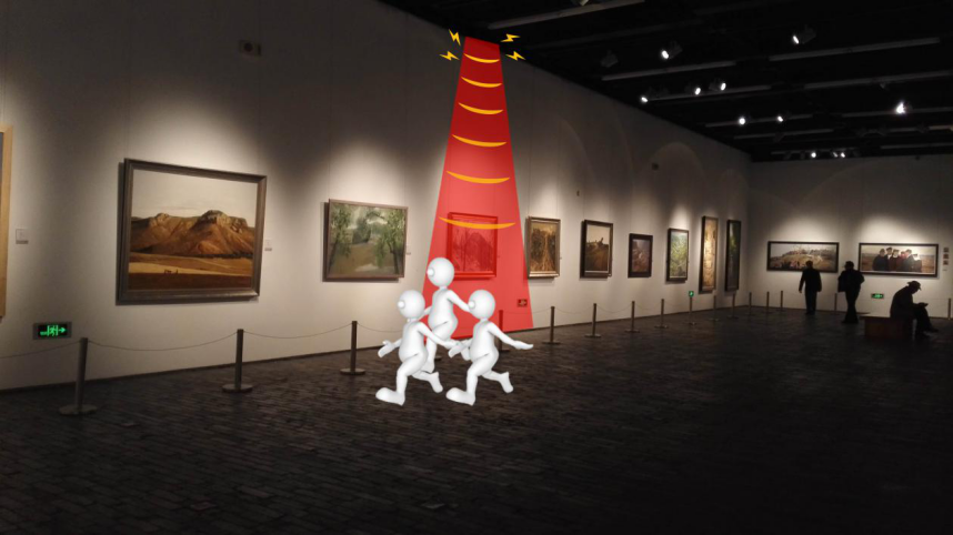 高清監(jiān)控攝像頭、紅外探測器以及報警系統(tǒng)這些似乎是博物館等展館的安防標配設備,很大程度上這些設備能夠在關鍵時刻發(fā)揮作用,及時探測到可疑人員的進出、怪異的行為,實時記錄犯罪證據(jù),并向警方發(fā)布報警求助信息。這一連串的反應在安防技術上已經(jīng)十分成熟,但是缺少了事中階段主動防御的過程,很容易發(fā)生還未等到警方到達現(xiàn)場、犯罪嫌疑人已經(jīng)逃離的情況。在警方調(diào)查現(xiàn)場、查看記錄、追蹤追捕的時間里,很有可能造成藝術品被轉(zhuǎn)賣被破壞,增加展館的損失,也是人類文明的損失。